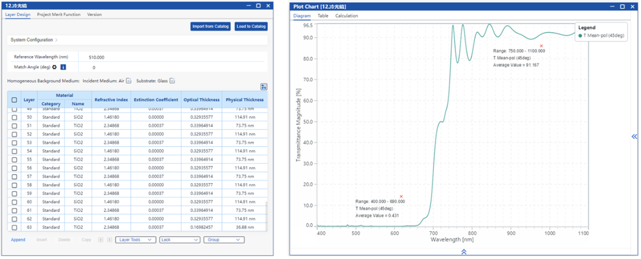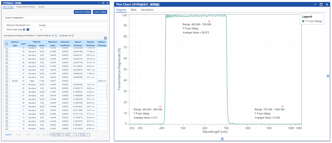 現(xiàn)如今光學(xué)薄膜的設(shè)計主要依靠軟件實現(xiàn),而訊技光電擁有多種全面的薄膜分析與設(shè)計軟件。這些膜系設(shè)計軟件,擁有完備的光學(xué)薄膜設(shè)計、分析、制造和故障排除的功能,可以提高光學(xué)鍍膜工程師的設(shè)計效率,從而最大限度降低制造成本。