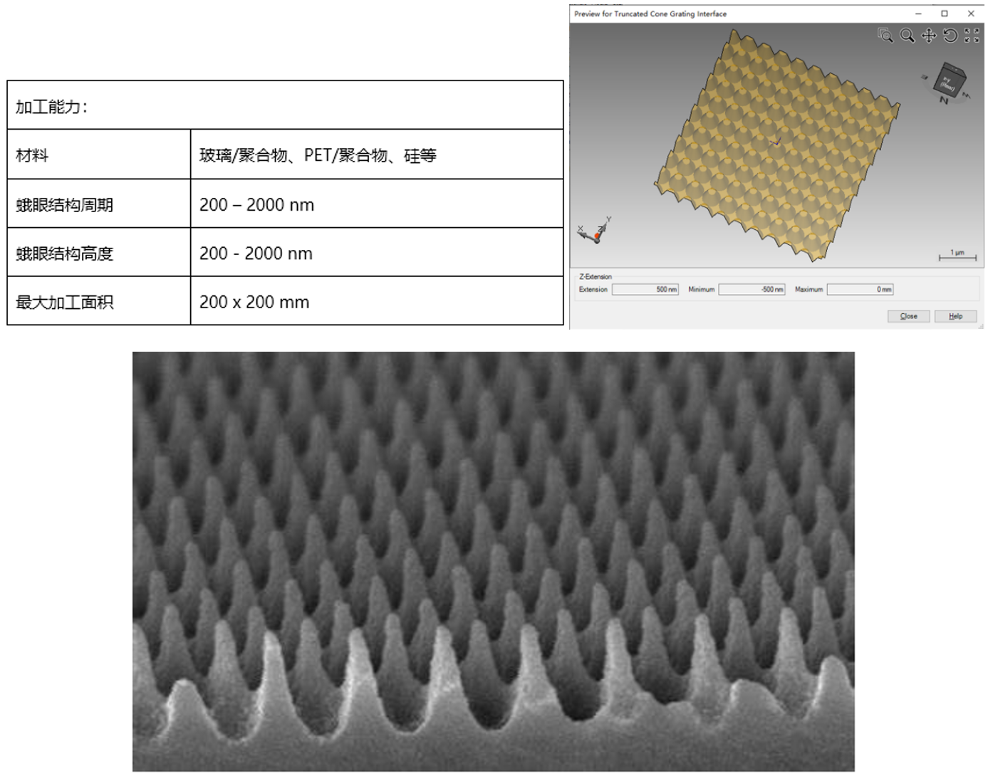 2)蛾眼減反結(jié)構(gòu)設(shè)計與加工承接