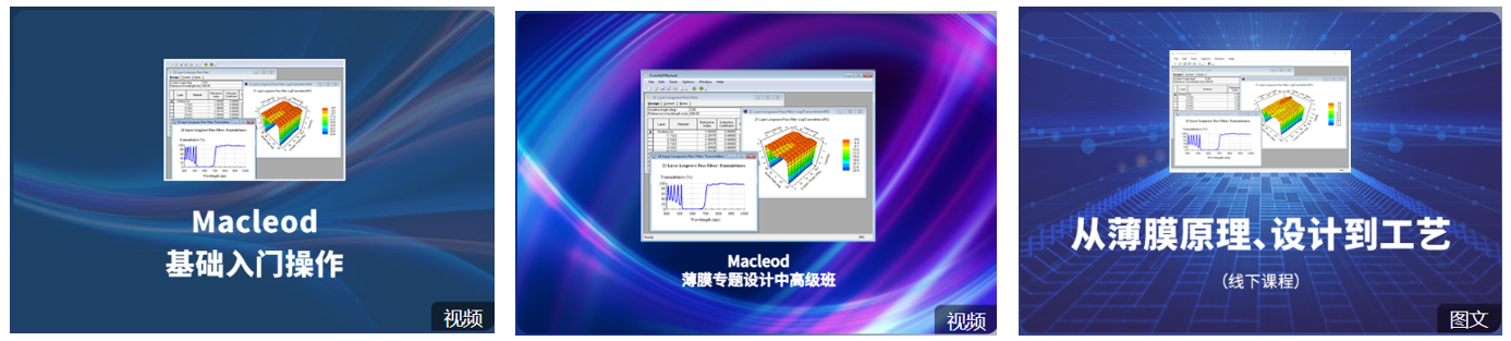 1) 我司有線上Essential Macleod教學(xué)課程,同時我司每年都有多場鍍膜類的線下課程,會邀請鍍膜行業(yè)專家來參與授課,未來也會持續(xù)設(shè)置鍍膜類課程,幫助客戶學(xué)習(xí)Macleod軟件,了解鍍膜行業(yè)相關(guān)問題